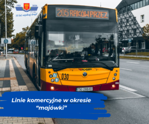 Ponadto w dniu 24.12.2025 r. (Wigilia) autobusy na liniach komercyjnych 201, 205, 206 i 208 będą jeździć według rozkładu niedzielnego, natomiast 25.12.2025 r. (Boże Narodzenie) i 01.01.2025 r. (Nowy Rok) i 6.01.2026 r. (Trzech Króli) nie będą w ogóle kursować.